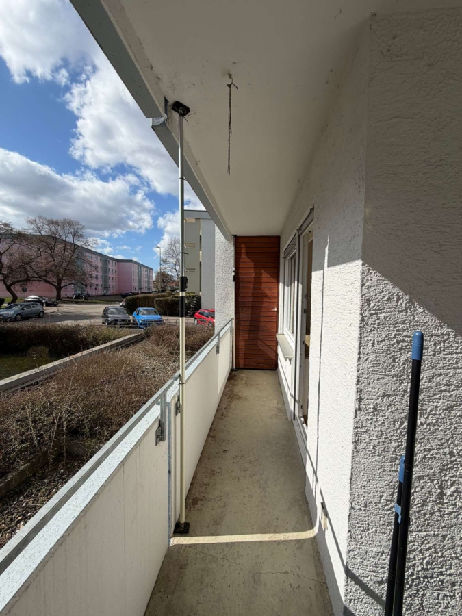 Die Wohnung verfügt über ein gemütliches Wohnzimmer mit direktem Zugang zum sonnigen Balkon in Südausrichtung. Hier lässt sich problemlos eine schöne Sitzecke einrichten – ideal, um den Feierabend entspannt ausklingen zu lassen. Auf dem Balkon befindet sich außerdem ein praktischer, eingebauter Abstellnischenschrank.