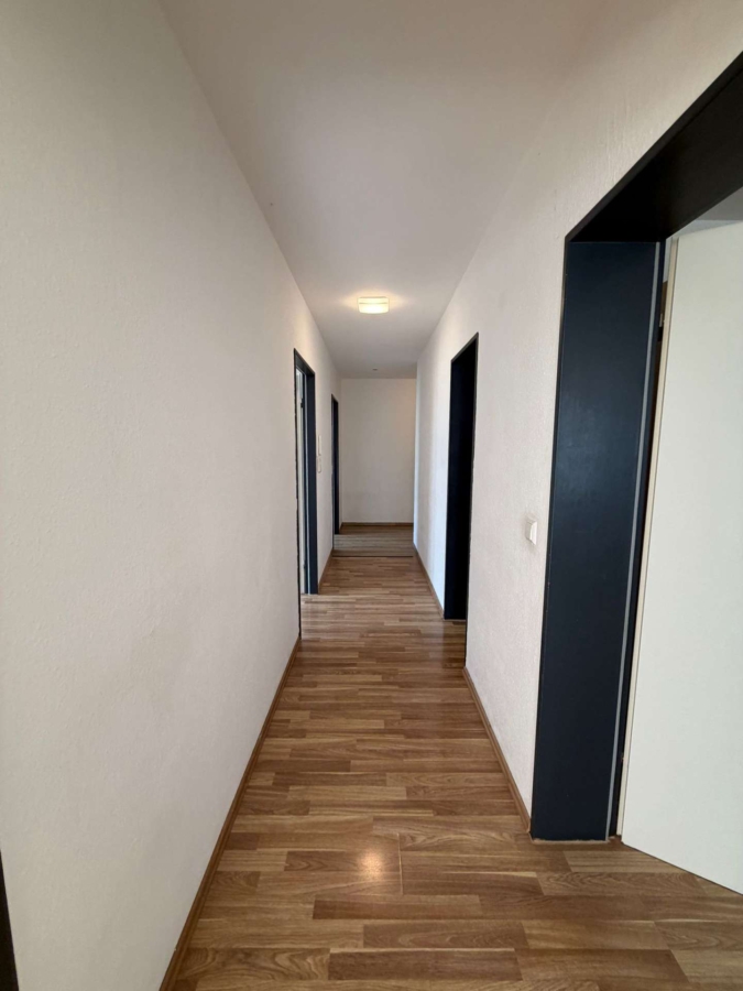 Über den großzügigen Eingangsbereich gelangen Sie in den Flur, von dem aus alle Räume der Wohnung direkt erreichbar sind. Der Eingangsbereich bietet viel Platz für eine Garderobe oder eine kleine Ankleideecke. Mit einer einfachen Trockenbauwand ließe sich hier bei Bedarf sogar zusätzlicher Stauraum schaffen.