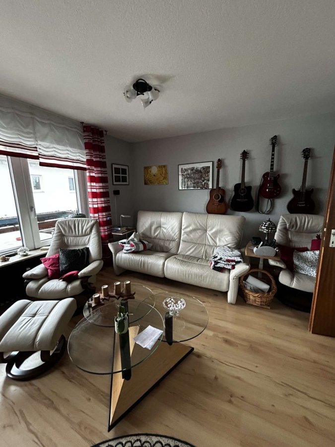 Besonders hervorzuheben ist das helle, freundliche Wohnzimmer mit einer separaten Essnische, die ideal Platz für einen Esstisch bietet und Wohnen und Essen harmonisch voneinander trennt. Von hier aus gelangen Sie auf den großen Balkon, der mit einer Markise ausgestattet ist und zusätzlichen Wohnkomfort bietet.