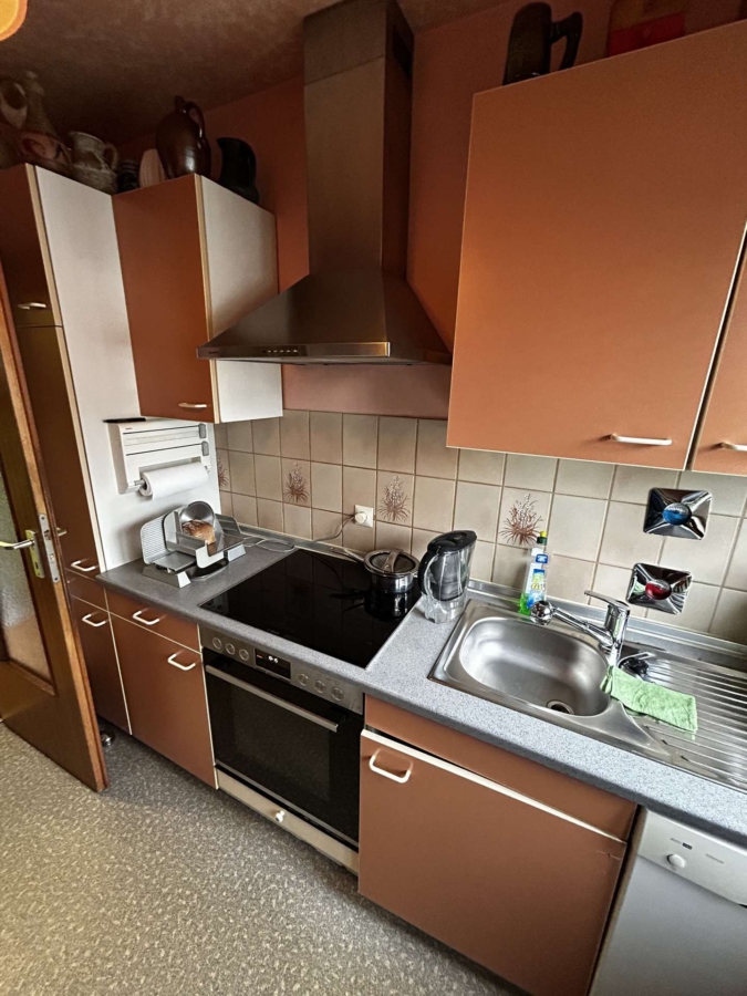 Die Küche ist mit einer Einbauküche versehen und bietet ausreichend Stauraum sowie Arbeitsfläche.